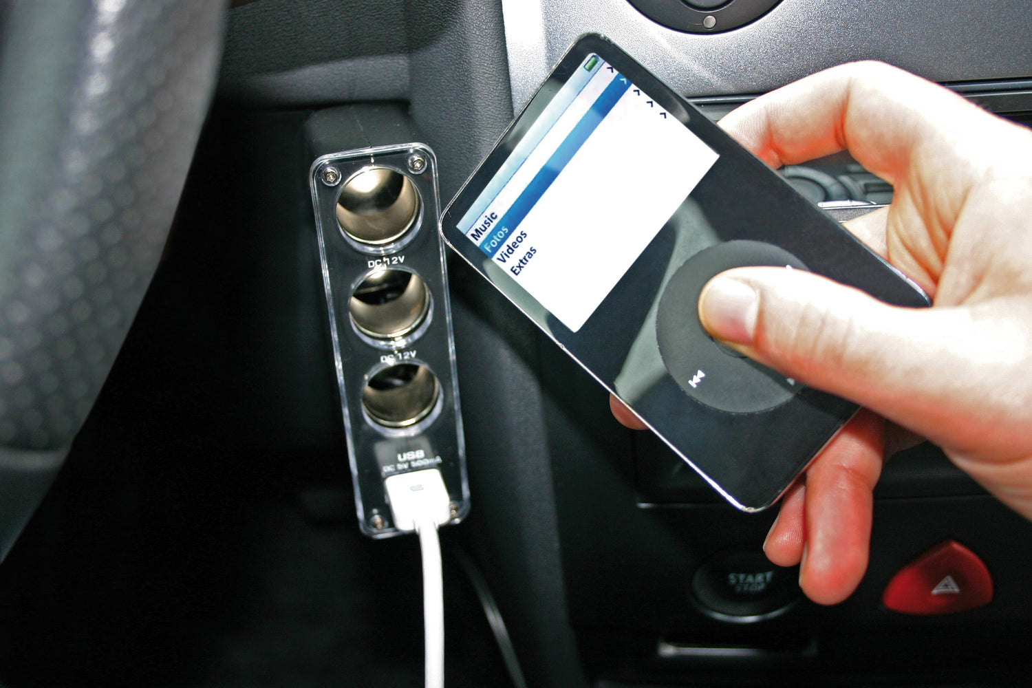 Uscita a 2 voltaggi: 3 prese 24V per spinotti accendisigari, e 1 presa USB per collegare smartphone, lettori mp3, pda, ecc. Cavo da 300 cm. Spinotto per presa accendisigari con fusibile interno. Telecomando a infrarossi