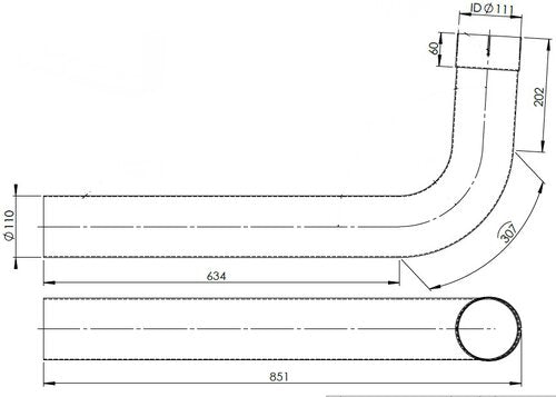 Tubo scarico anteriore specificamente progettato per i modelli Man TGA, TGS e TGX. Questo componente essenziale del sistema di scarico garantisce il corretto convogliamento dei gas di combustione dal motore verso la marmitta catalitica. Con una lunghezza di 851 mm e un diametro interno di 110 mm, si adatta perfettamente alle specifiche tecniche dei veicoli indicati. Realizzato con materiali resistenti alle alte temperature e alla corrosione, assicura durabilità e affidabilità nel tempo. La sostituzione di questo tubo è consigliata quando presenta crepe, perdite o deterioramento visibile, al fine di mantenere l'efficienza del sistema di scarico e la conformità alle normative ambientali.