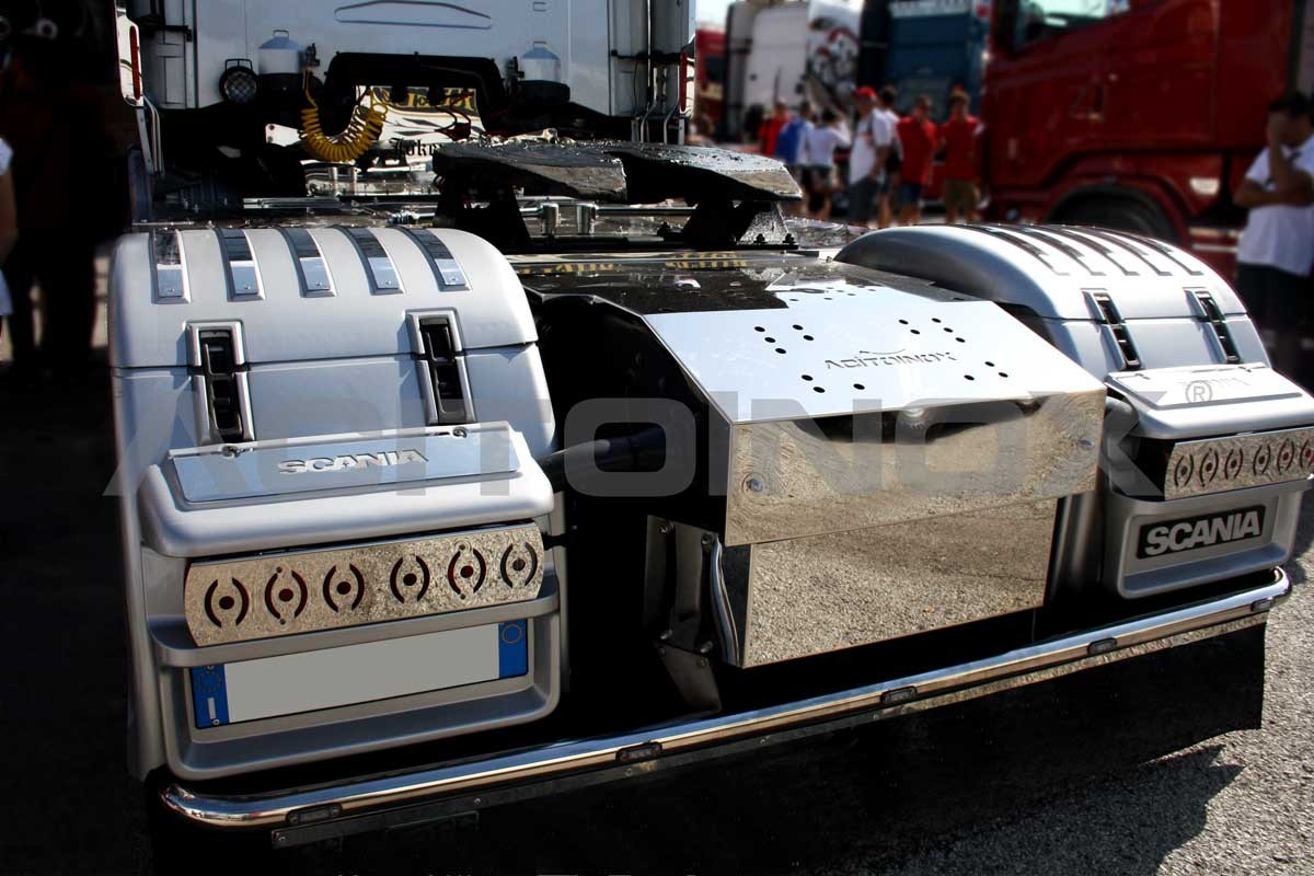 Rear bumper bar with 60mm diameter in super mirror stainless steel (aisi 304) for Scania L and R.