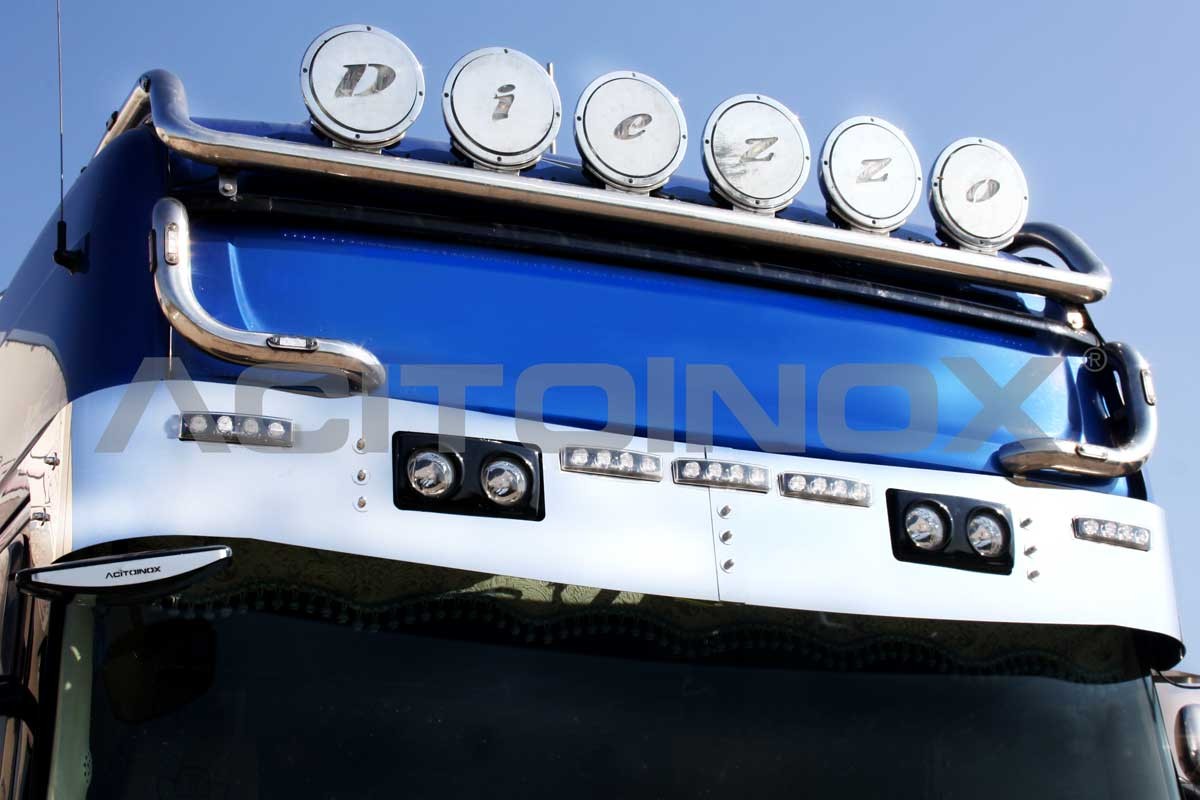Super mirror stainless steel sun visor (aisi 304) for Scania L, R, New R to replace the original.