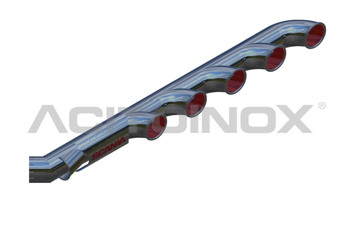 Super polished stainless steel 5-outlet exhaust tip for SCANIA R-series.