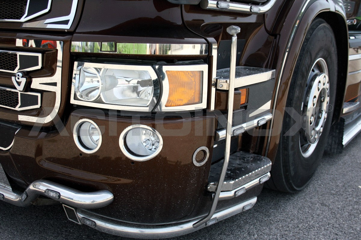 Pair of super mirror stainless steel (aisi 304) side rods for Scania R, New R and Streamline.