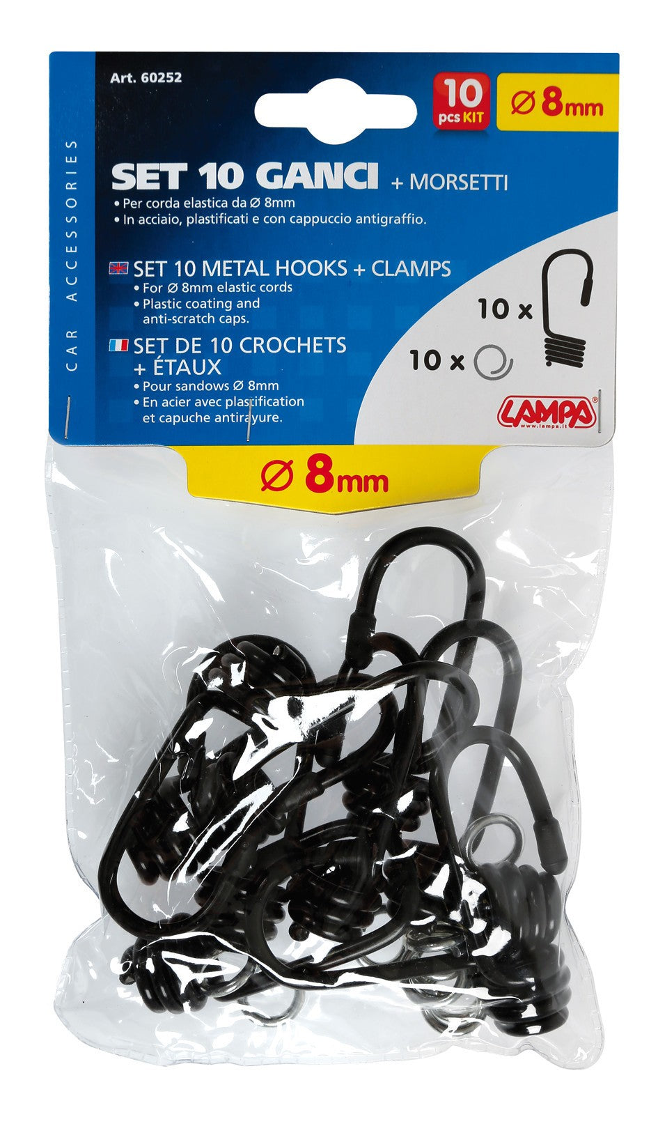 Set of 10 hooks + clamps - Ø 8 mm is backordered and will ship as soon as it is back in stock.