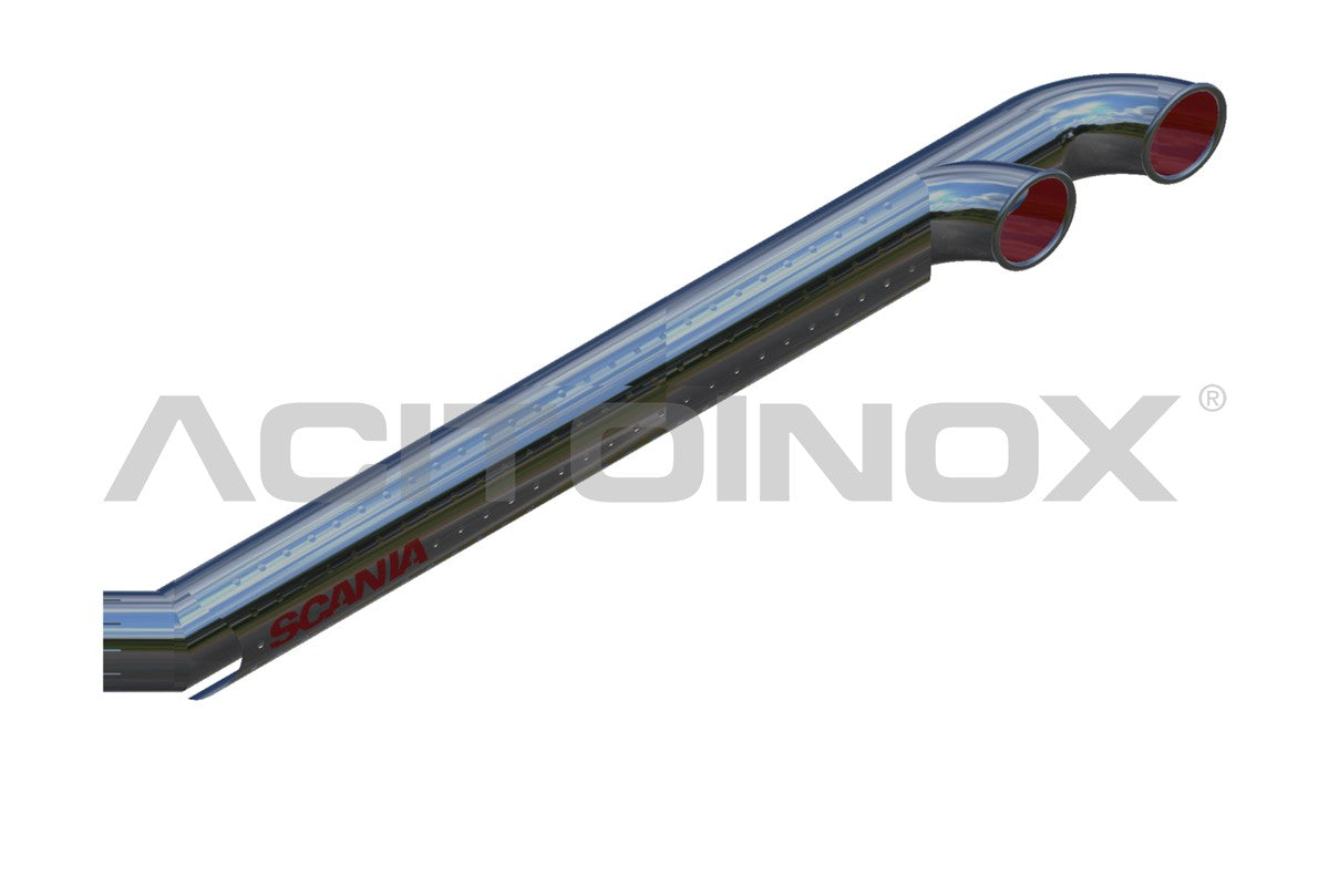 Super polished stainless steel 2 exit exhaust tip for SCANIA R-series.