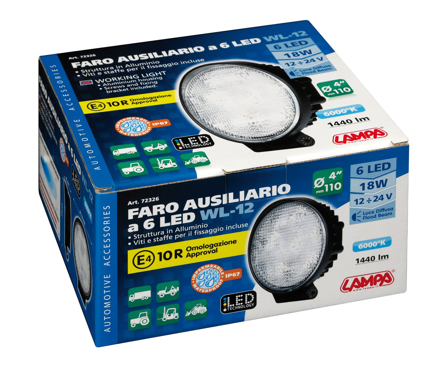 WL-12, 6 LED auxiliary light - 12/24V - White