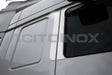 Applicazioni in acciaio inox super mirror da applicare sui piantoni dello sportello DAF XF 105.