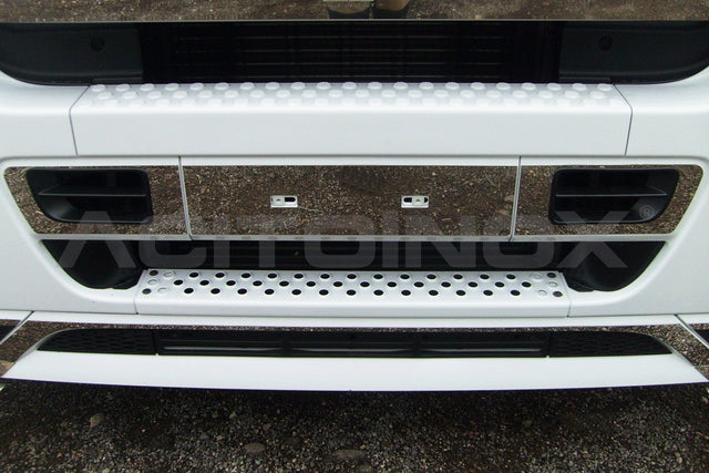 Applicazione lamiera porta targa in acciaio inox super mirror (aisi 304) per Mercedes Actros Mp3 2009.