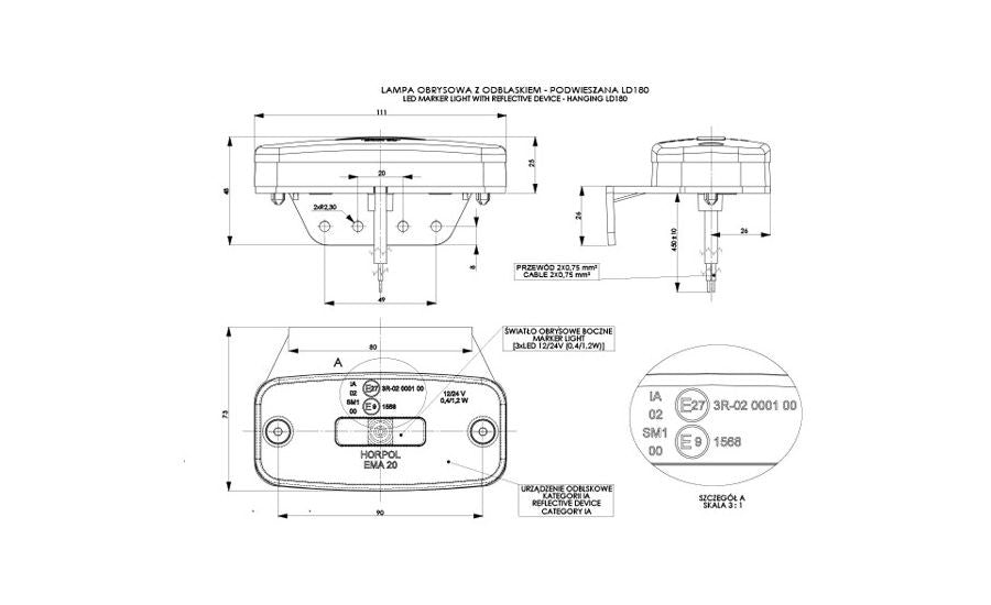 Luce laterale arancione a 3LED con cavo e staffa di fissaggio