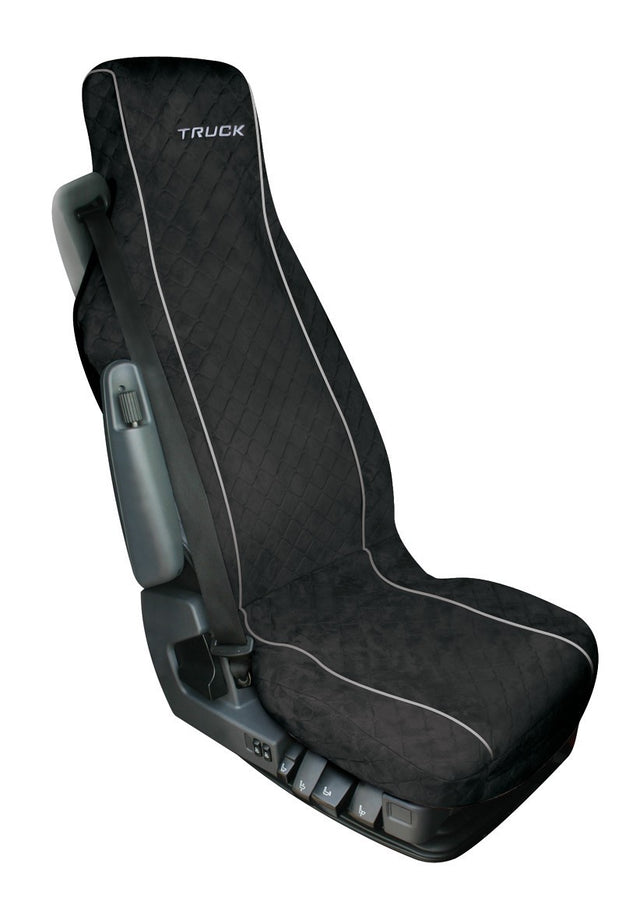 Qualità superiore, imbottitura trapuntata. Universale per la maggior parte dei camion con sedili standard. Con tasca posteriore ed anteriore. Fissaggi laterali a strappo per un facile montaggio.