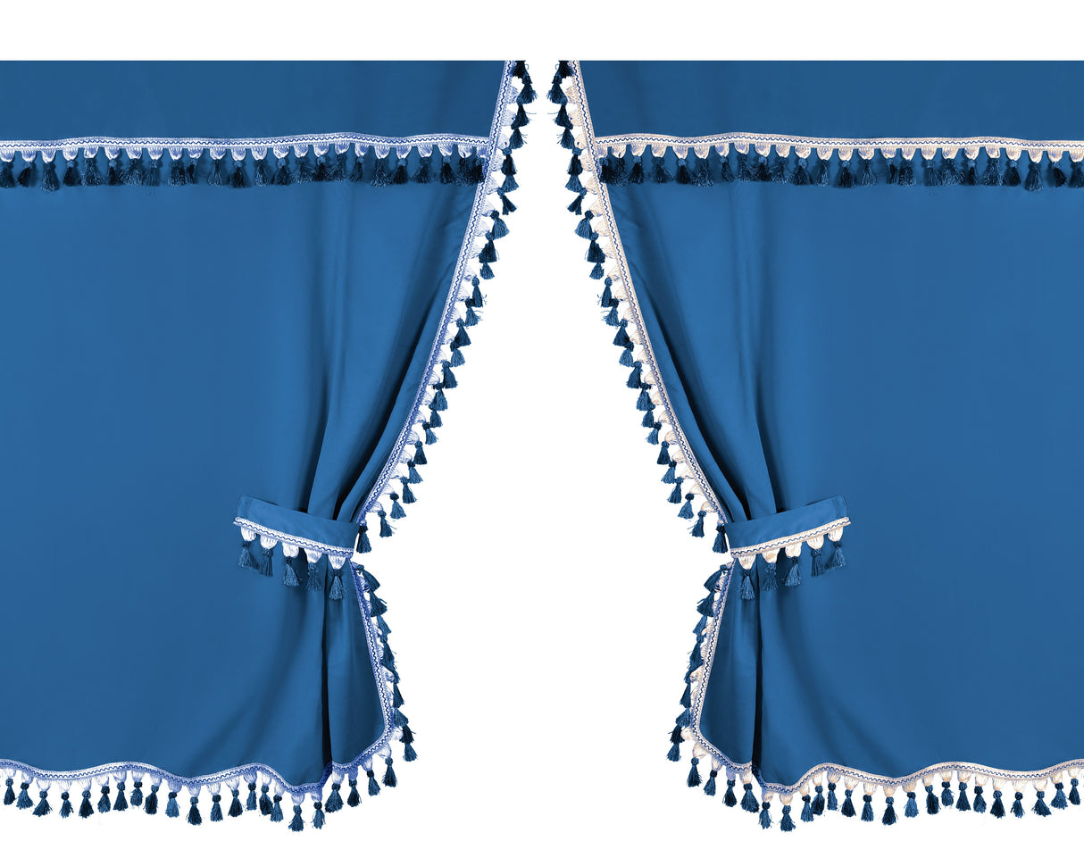 Lo speciale tessuto in poliestere impedisce il passaggio della luce. Universale per la maggior parte dei camion. Composto da: 2 tende centrali, 2 fasce raccoglitenda calamitate, 2 fermatenda magnetici, 60 ganci in plastica.