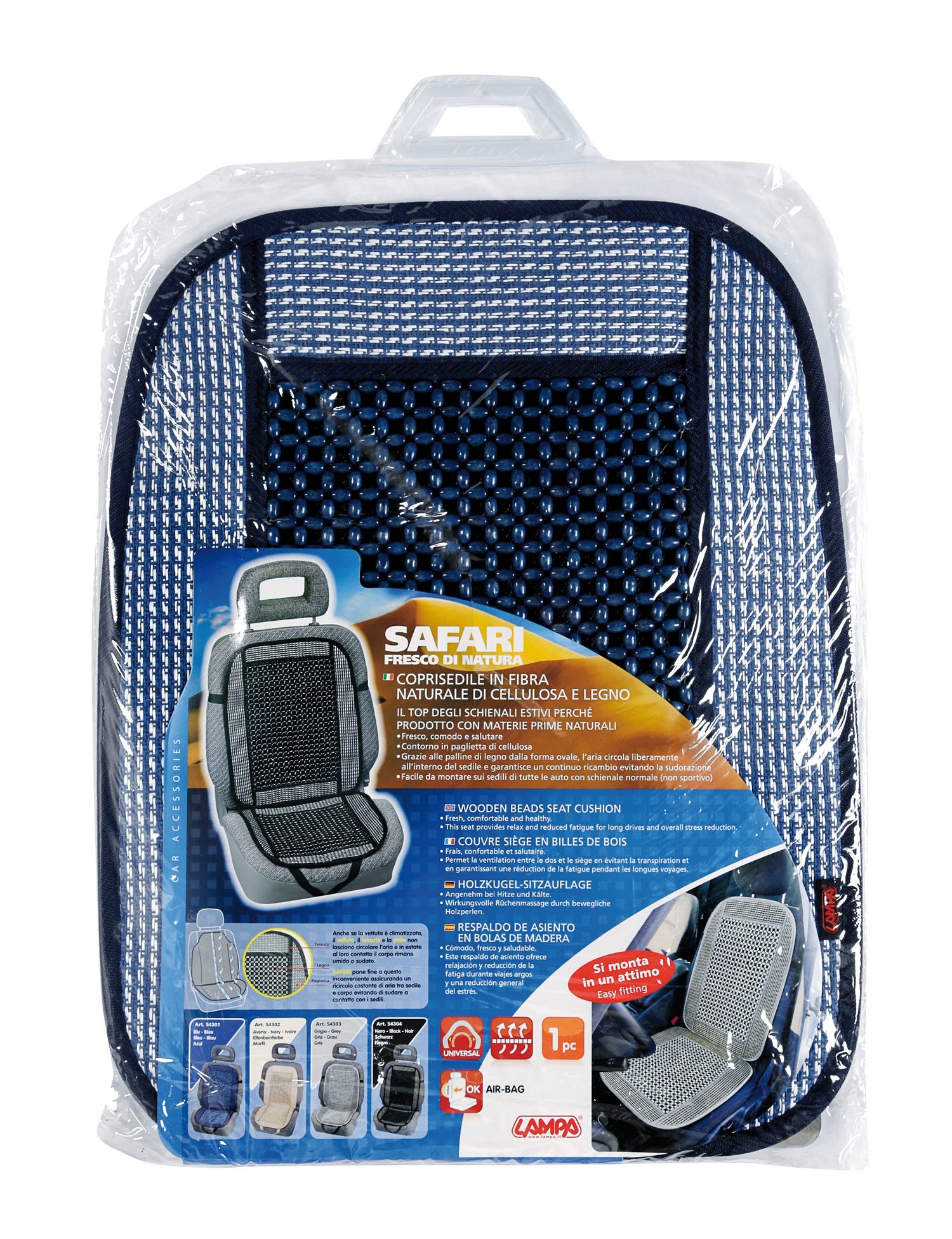 Safari, schienale in fibra naturale di cellulosa e legno - Blu